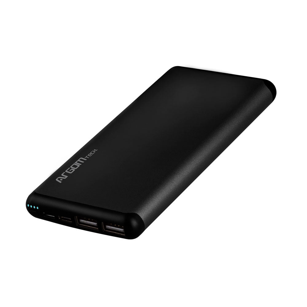 The ArgomTech 12000mAh Premium Slim power bank supplies up to 6 extra charges. This power bank is made up of aluminum shell for a prestige feel and elegant look. The perfect companion for your road trips or other long journeys. The power bank comes equipped with two USB ports to charge two devices simultaneously. Versatile dual charging inputs so that you can use the traditional micro-USB cable or your high end Type-C cable to charge the power bank. Includes bright easy to read LED indicators to show the battery status. No longer worry about running out of battery on your mobile devices!