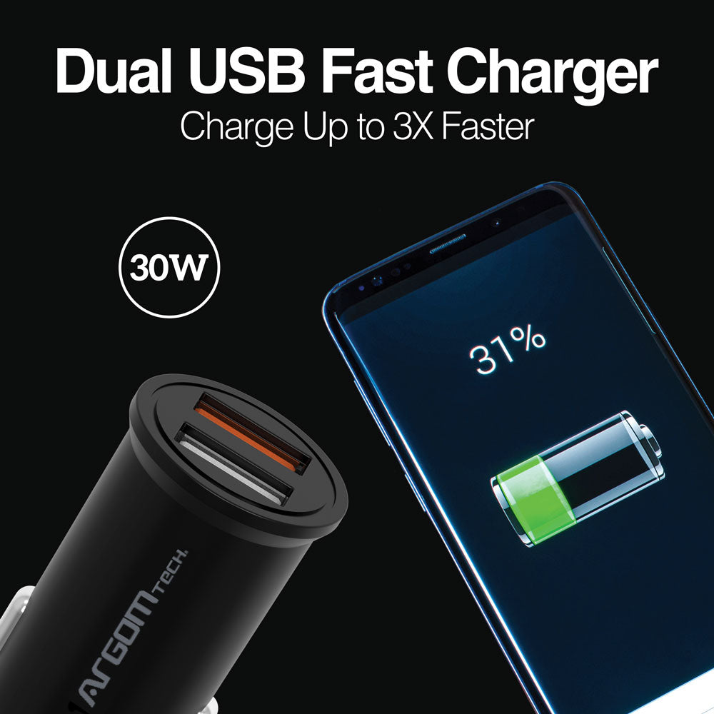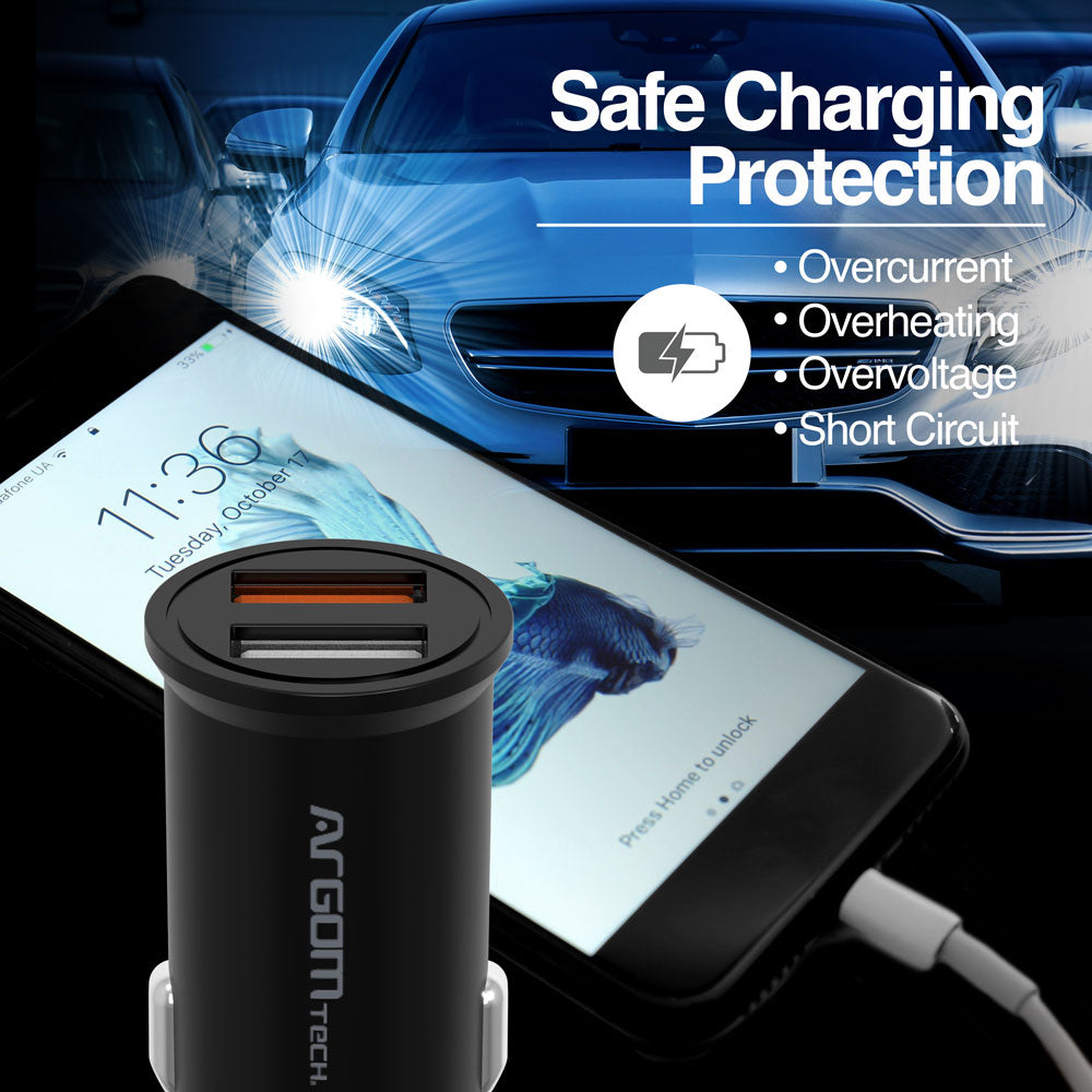 Enjoy your journey and don’t be worried about running out of battery. Up to three times faster charging than standard chargers. Equipped with 30W of charging power through one USB QC3.0 18W port & one USB 12W port. Quick charge up to 2 devices at once while you're on the go. This dual port charger with fast charging capabilities and safe charging technology will extend the battery life of your phone and tablet, keeping them always ready to use.