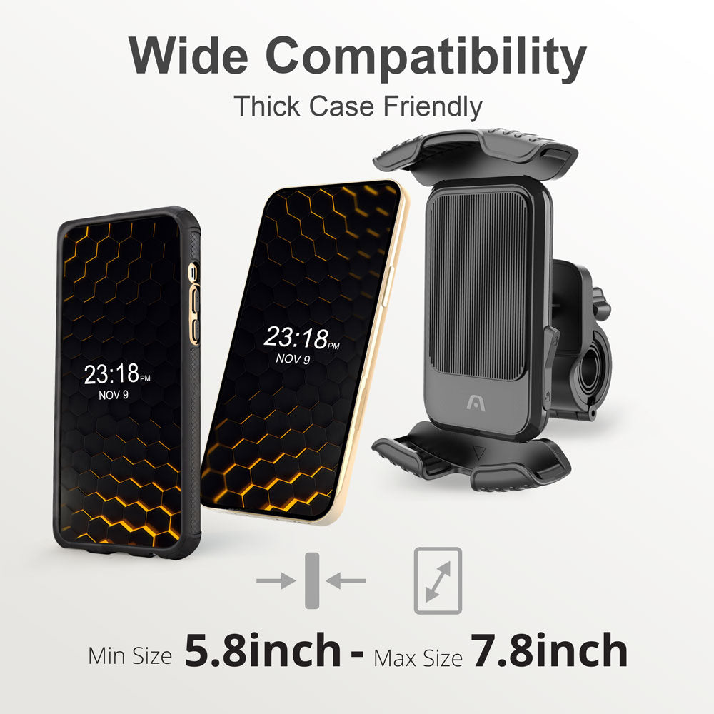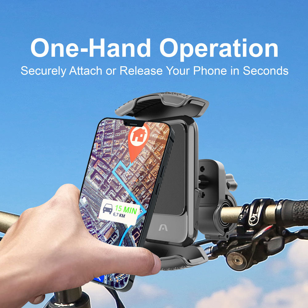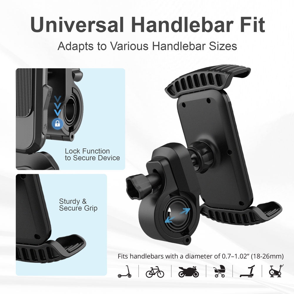 Upgrade your riding experience with this versatile bike mount designed for convenience, durability, and safety. With features like one-hand operation, 360° rotation, and shockproof protection, this mount ensures your phone stays secure and accessible throughout your journey. Its wide compatibility and thick case-friendly design make it suitable for most smartphones, while the adjustable mount fits a variety of handlebar sizes. Crafted from high-quality materials with a sturdy locking mechanism, this mount is built to withstand rough terrains and provide ultimate phone stability. Simple to install and easy to use, it’s the perfect accessory for any bike ride. This bike mount combines practicality, durability, and style, making it a must-have for cyclists looking for reliable phone support.