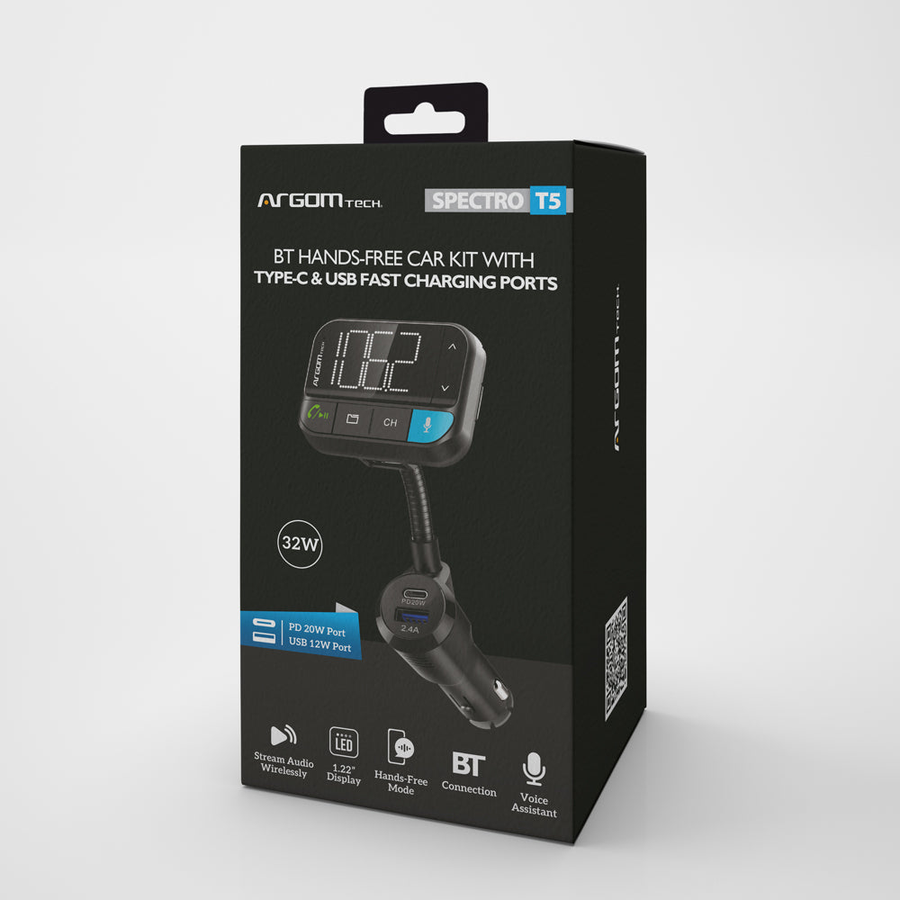 Our Spectro T4 Hands-Free Car Kit gives you seamless audio streaming and hands-free calling right through your vehicle’s stereo. Equipped with Bluetooth 5.3 for reliable connectivity, dual quick-charging ports (PD 20W & USB 12W), a bright easy-to-read LCD screen, and a flexible gooseneck mount for optimal viewing and drive-time convenience. The built-in microphone allows for clear hands-free calling, and the device also supports Voice Assistant activation for Siri or Google Assistant, making your drive safer and fully connected.