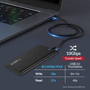 Place your Internal M Key PCI-E SSD Hard Drive in this lightweight aluminum case with a Type-C interface and transform it into a portable Ultra Fast external HD solution with data transfer rates of up to 10Gbps. This portable backup to be carried anywhere you go offers highly efficient and economical storage. This Plug & Play enclosure with its ultra-slim compact design provides a fast and easy way to add more storage space to your desktop PC or notebook.
