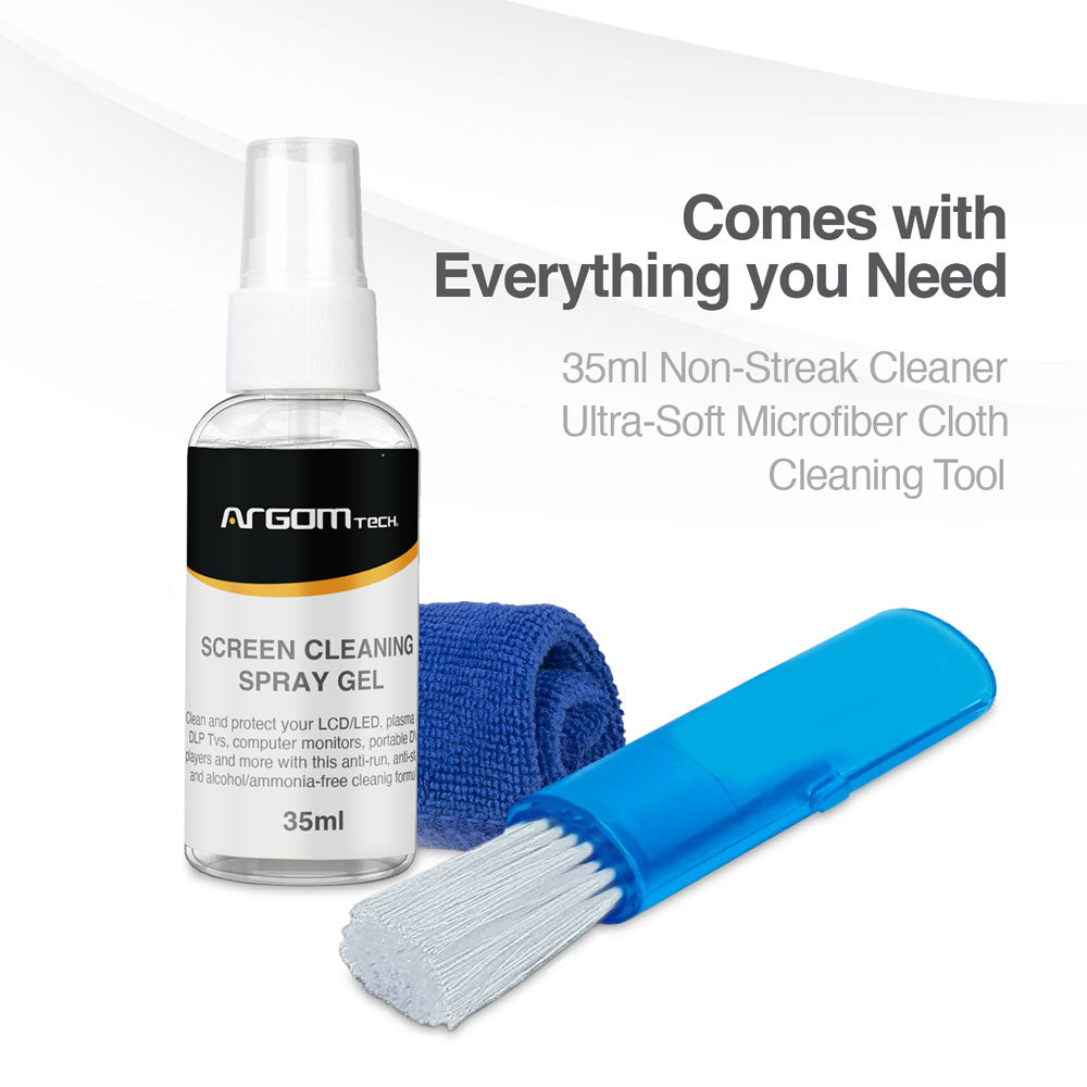 Cleaning cloth: Combined with the screen cleaning spray liquid the cleaning cloth remove dust, dirt, fingerprints, oils and other debris. 170mm x 170mm cotton flannel 2-side cleaning brush 20ml non-drop cleaning liquid spray.