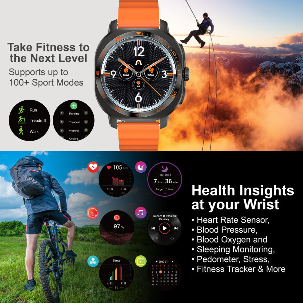The C62 delivers advanced health tracking with sensors for heart rate, blood pressure, SpO₂, stress, and sleep, plus 107 fitness modes and a pedometer. You’ll also enjoy BT calling, compass, and media controls, along with AI-powered features such as AI voice assistance and AI dial generation. Smart alerts and tools like calendar, SOS, and stock updates are all easily managed via rotary dial navigation—backed by a long-lasting battery and wireless charging convenience.